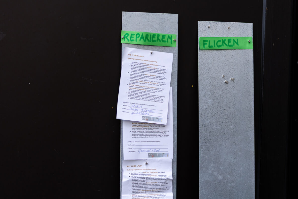 Experten und Expertinnen stehen bei Reparaturen mit Rat und Tat zur Seite (Elektrogeräte, Holz, Metall, Textilien …). Für Selber-Reparierer sind eine Vielzahl an Geräten in der Macherei während der Öffnungszeiten verfügbar. Es fallen keinerlei Kosten an, wir freuen uns aber über einen Wertschätzungsbeitrag entsprechend den persönlichen Möglichkeiten. Bei großem Andrang kann jeweils nur ein Gegenstand pro Person repariert werden. Letzte Annahme: 11:30 Uhr. Keine Anmeldung, einfach vorbeikommen.